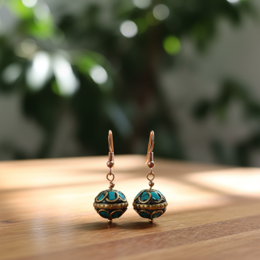 Los Pendientes India son una joya con alma viajera y esencia ancestral. Hechos en Plata de Ley 925 con baño de oro rosa, incorporan una pieza central de bronce adornada con turquesa natural y coral, traídas directamente de Nepal, cargadas de historia y simbolismo.